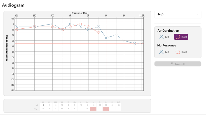 - When complete, select ‘Audiogram’ in the bottom right to begin manual fitting.